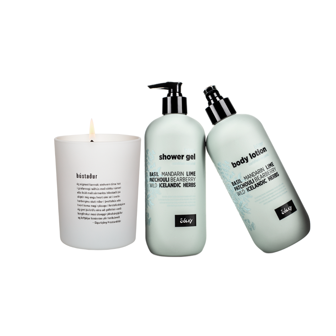 Blær Body Wash and Lotion cleanse and nourish with wild Icelandic herbs, organic shea butter, and essential oils of lime, mandarin, and fennel.